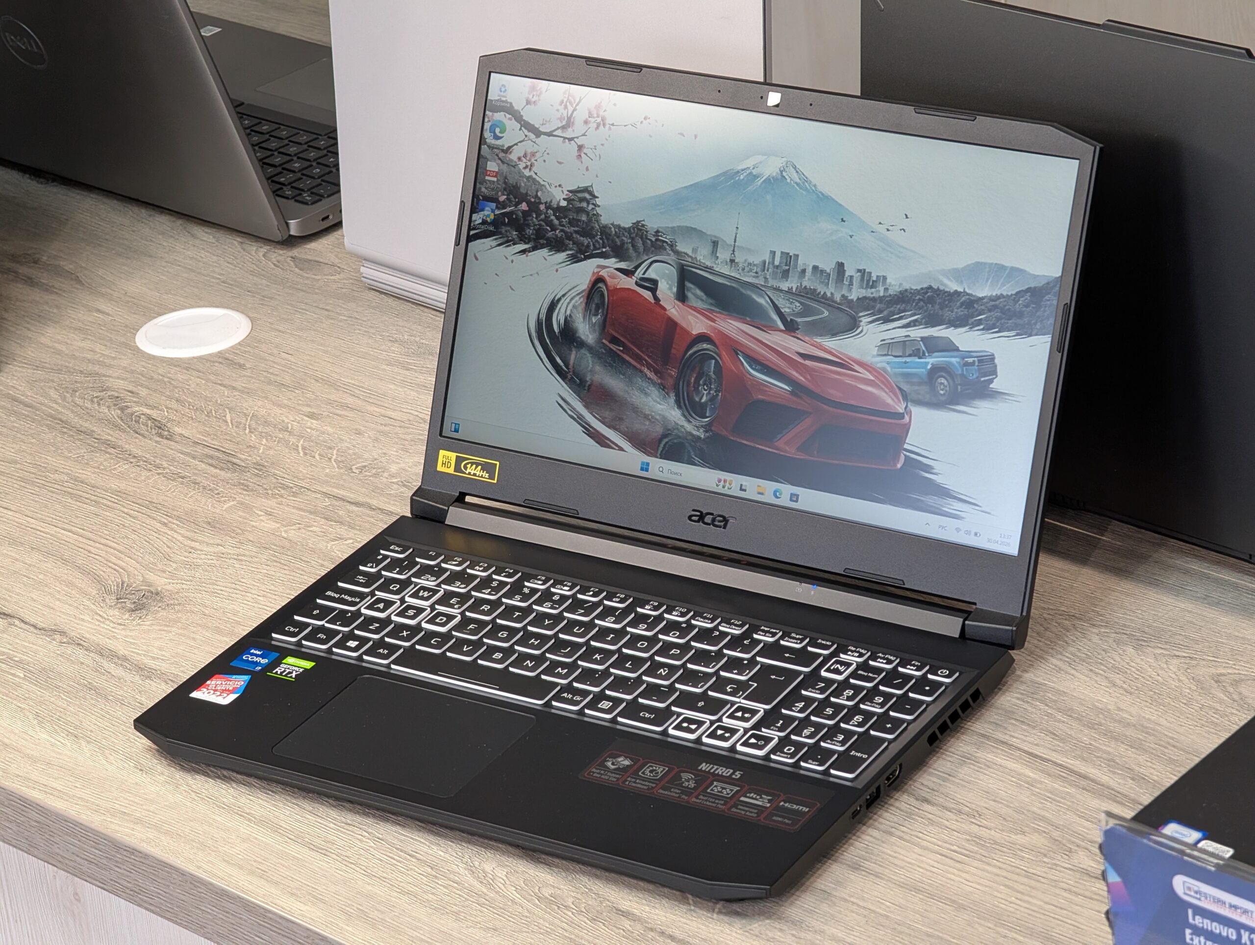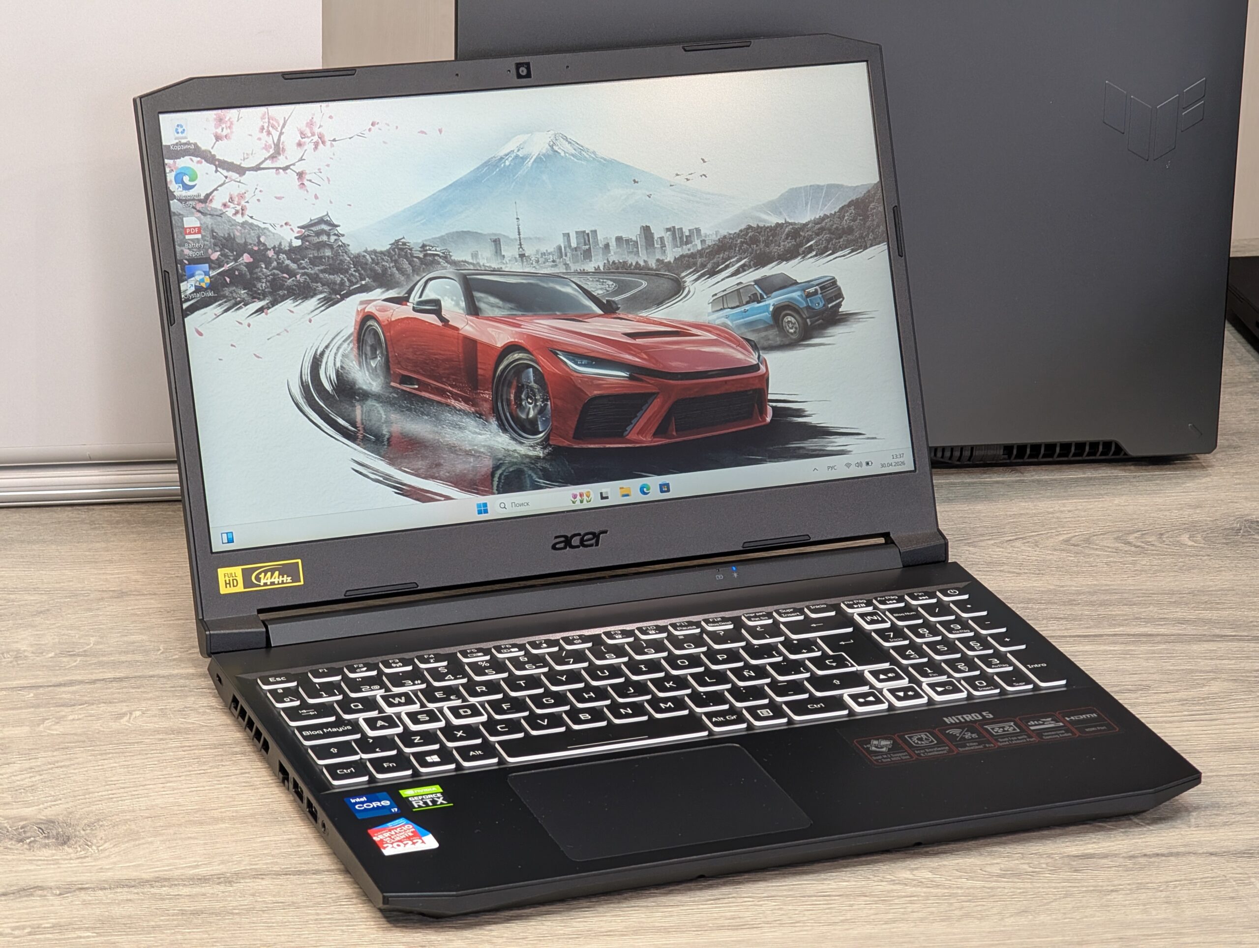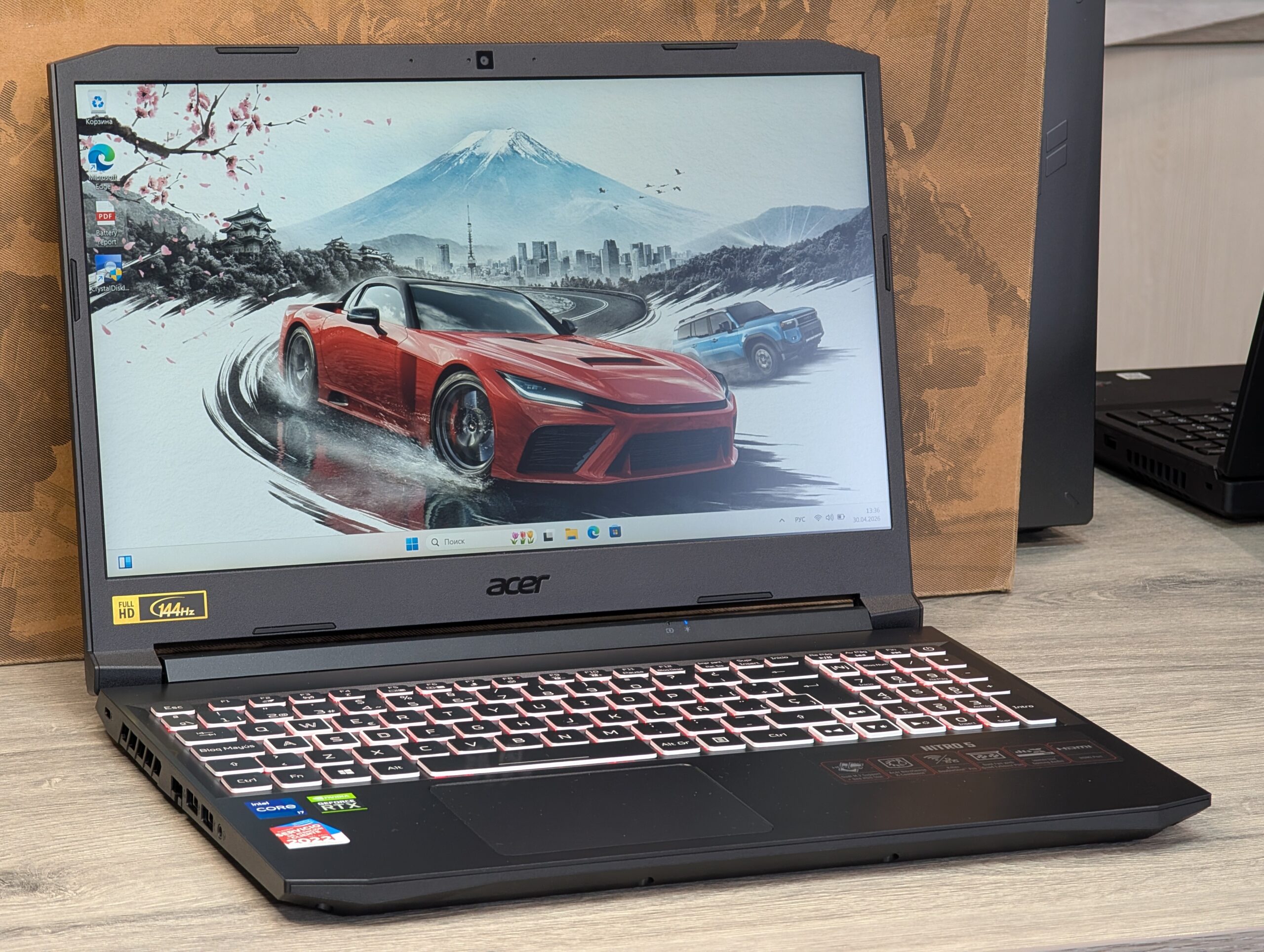Acer Nitro 5 AN515-57 este un laptop de gaming puternic, conceput pentru jucători și profesioniști care solicită performanță ridicată într-un format mobil. Datorită combinației dintre procesorul de înaltă performanță Intel Core i7 din a 11-a generație și placa video NVIDIA GeForce RTX 3070, dispozitivul gestionează cu ușurință cele mai noi jocuri la setări înalte, precum și editarea video sau modelarea 3D. Ecranul cu o rată de reîmprospătare de 144 Hz asigură o fluiditate perfectă în scenele dinamice. Laptopul se află într-o stare practic nouă: timpul de funcționare al SSD-ului rapid de la Samsung este de doar 54 de ore, iar bateria a parcurs doar 4 cicluri de încărcare.