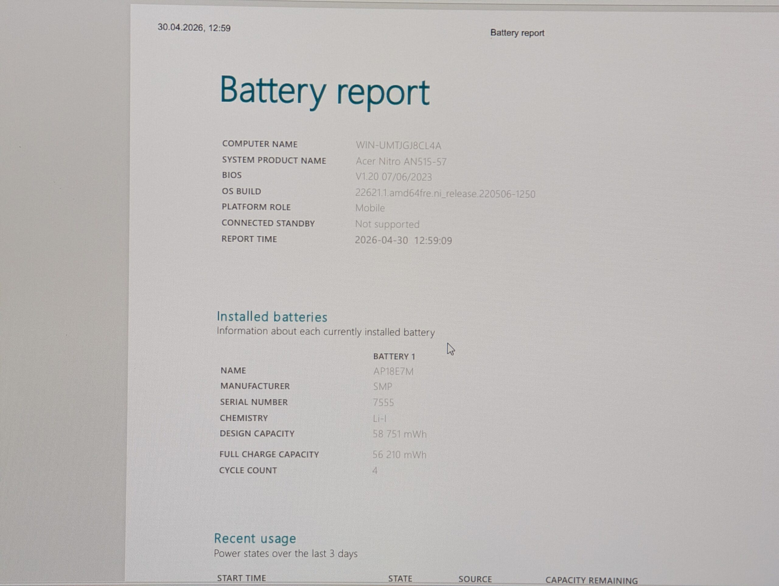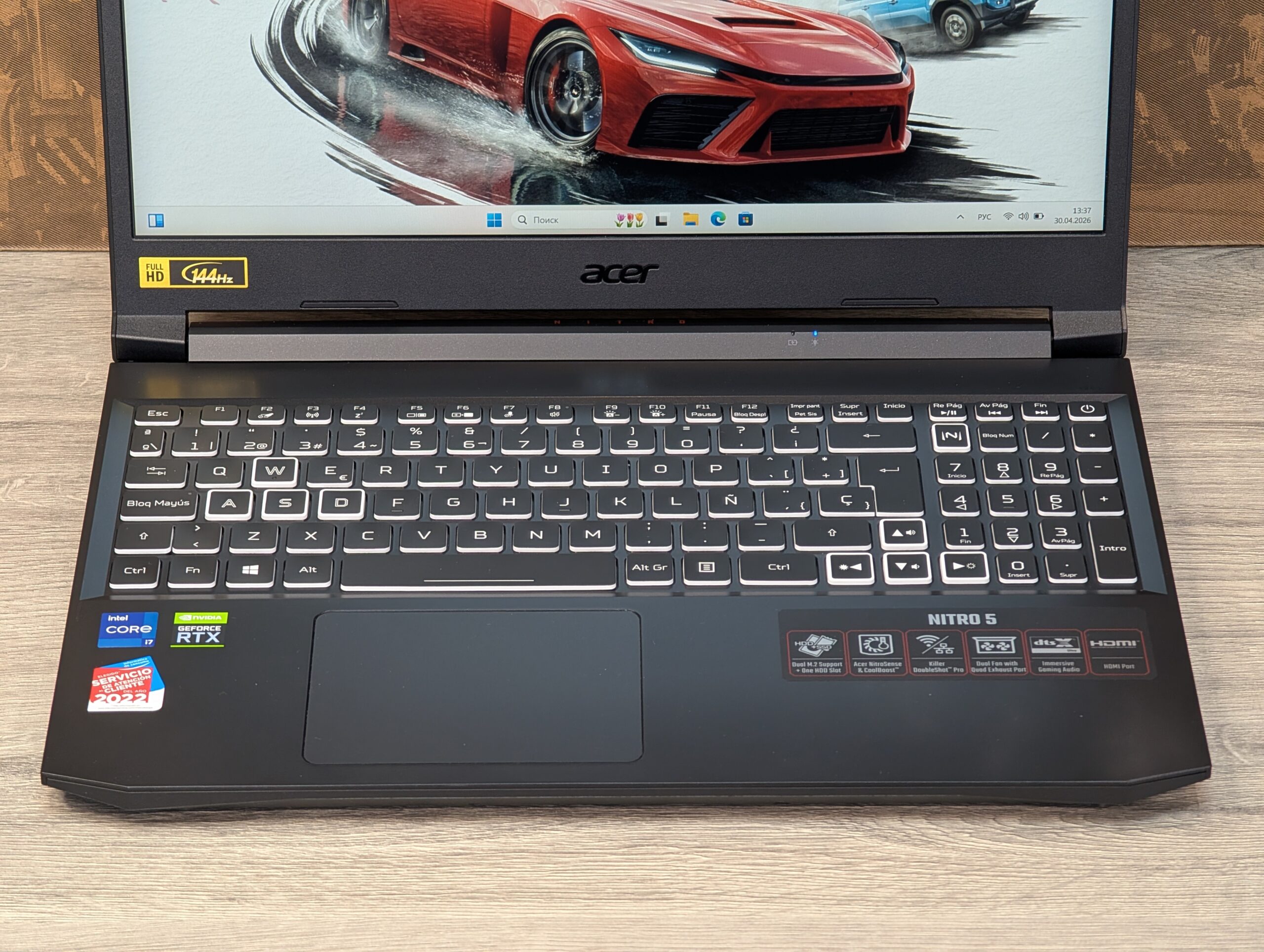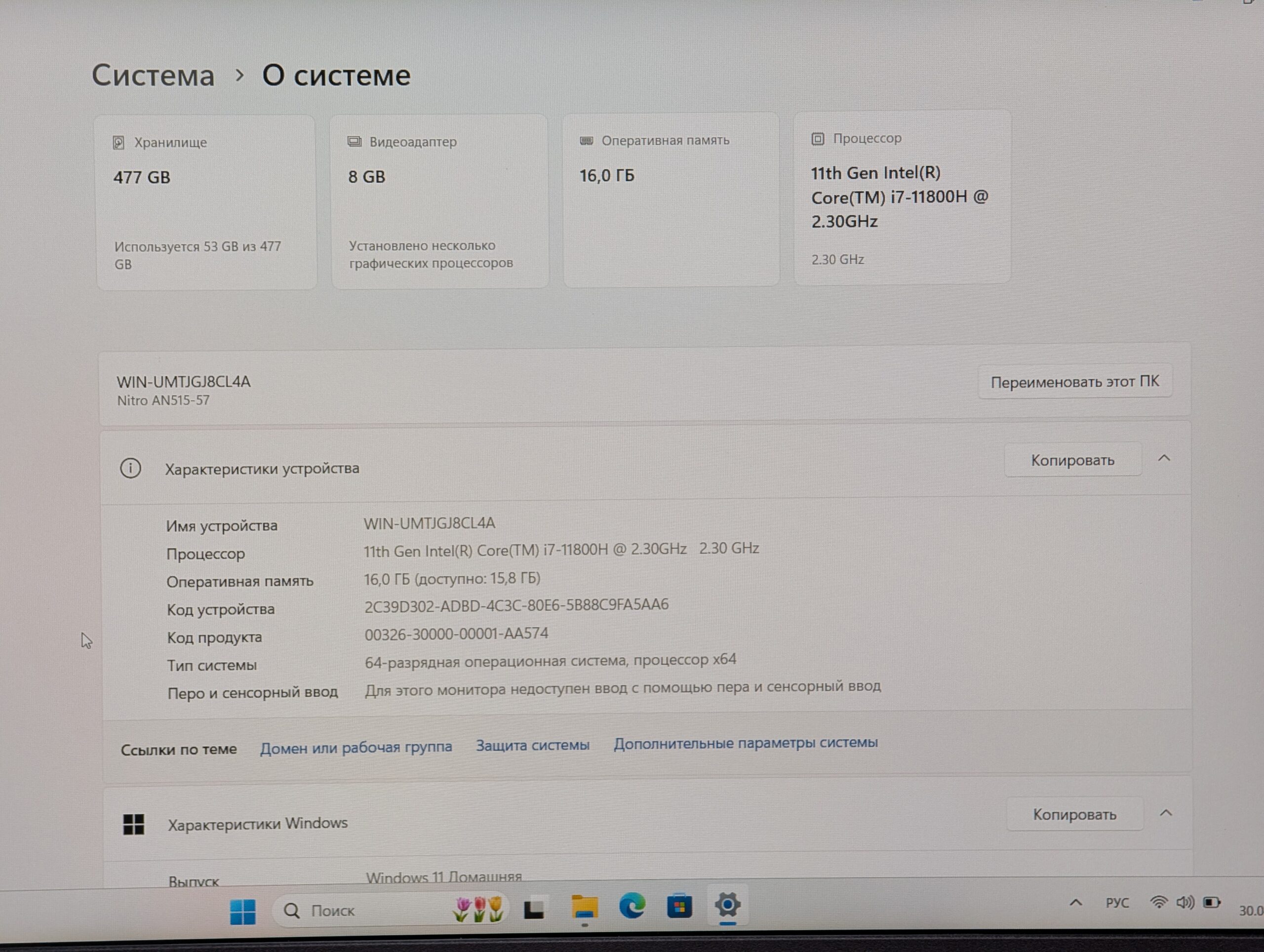 Acer Nitro 5 AN515-57 este un laptop de gaming puternic, conceput pentru jucători și profesioniști care solicită performanță ridicată într-un format mobil. Datorită combinației dintre procesorul de înaltă performanță Intel Core i7 din a 11-a generație și placa video NVIDIA GeForce RTX 3070, dispozitivul gestionează cu ușurință cele mai noi jocuri la setări înalte, precum și editarea video sau modelarea 3D. Ecranul cu o rată de reîmprospătare de 144 Hz asigură o fluiditate perfectă în scenele dinamice. Laptopul se află într-o stare practic nouă: timpul de funcționare al SSD-ului rapid de la Samsung este de doar 54 de ore, iar bateria a parcurs doar 4 cicluri de încărcare.
