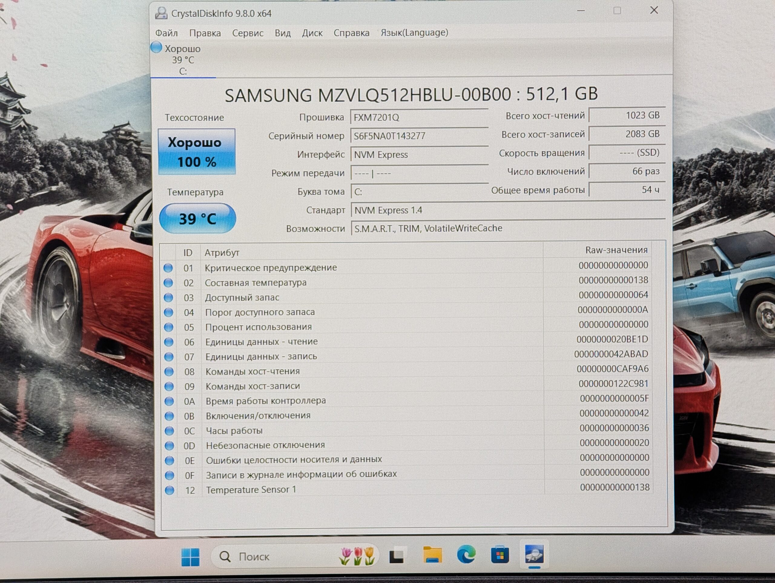 — Stocare: 512 GB NVMe SSD (Samsung) — unitate ultra-rapidă cu timp minim de utilizare (54 ore).