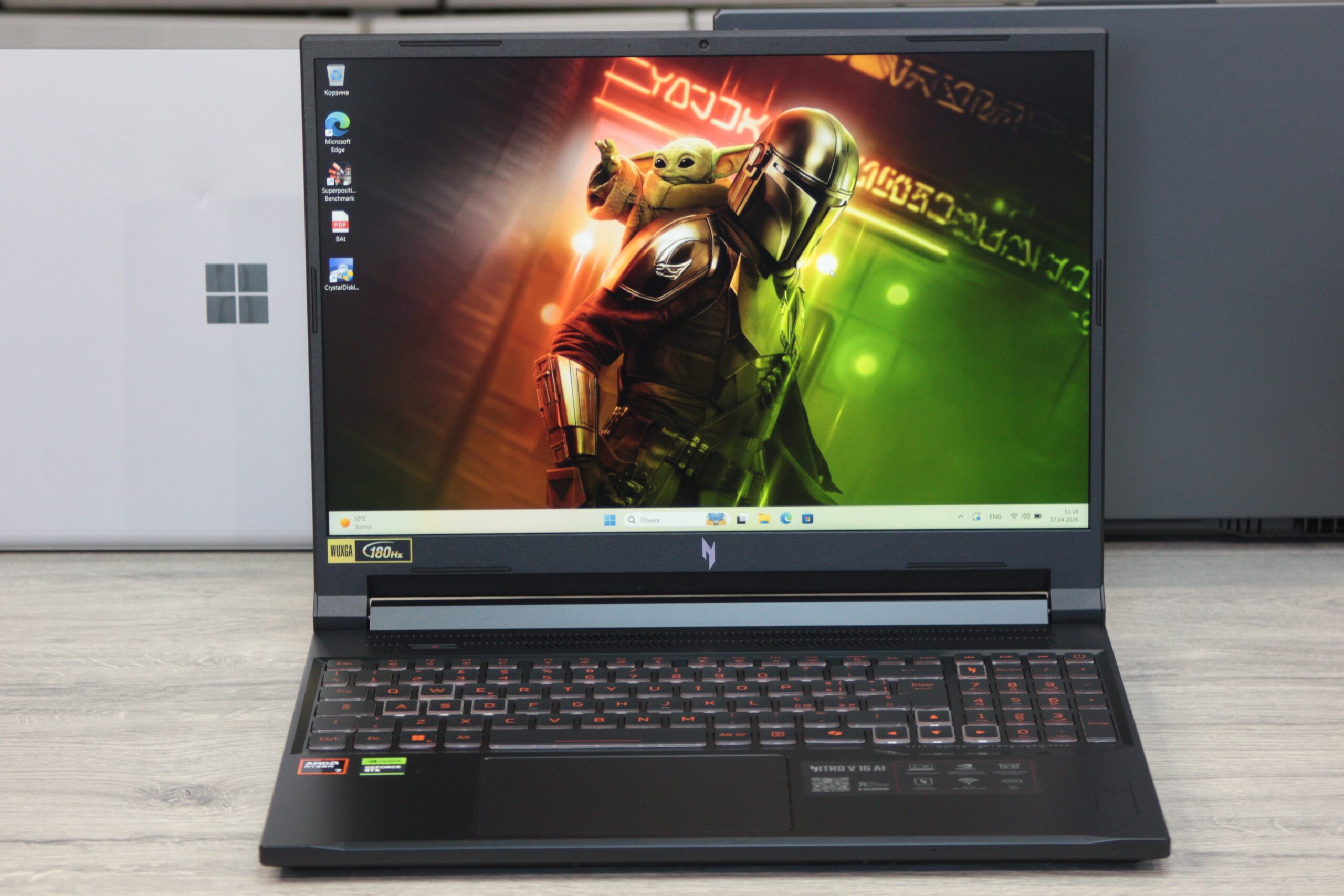 — Display: 16.0″ WUXGA (1920 x 1200) IPS, 180 Hz — spațiu de lucru extins (16:10) și fluiditate uimitoare a imaginii.