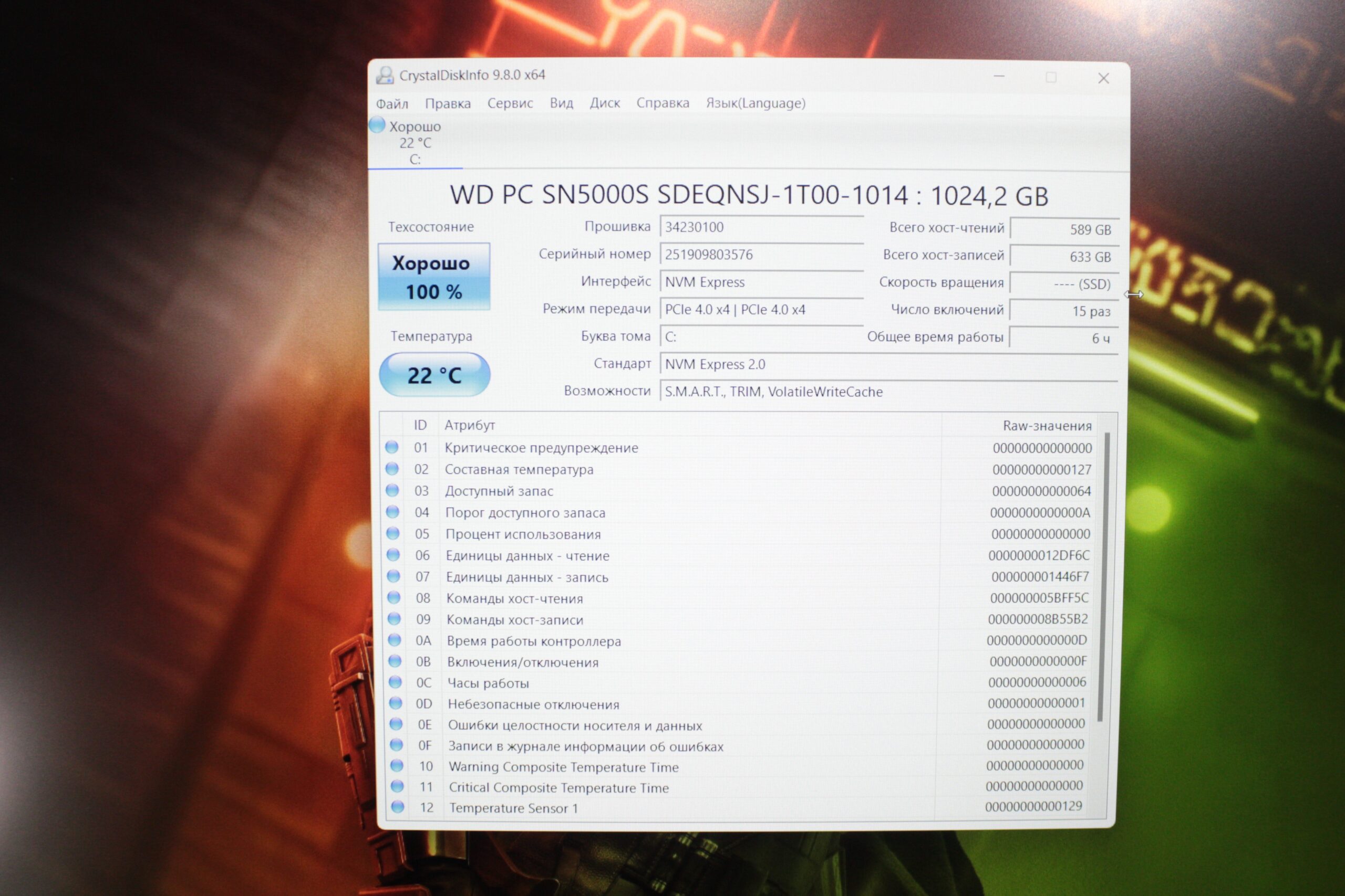 — Stocare: 1 TB NVMe SSD (WD SN5000S) — volum imens de stocare și viteză fulgerătoare (timp de funcționare de doar 6 ore).
