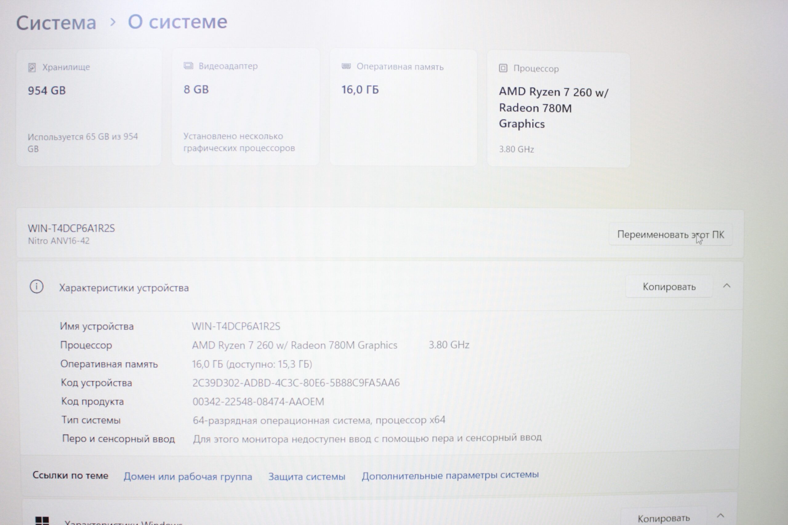 — Procesor: AMD Ryzen 7 260 (8 nuclee / 16 fire de execuție), până la 5.10 GHz — cip de înaltă performanță pentru calcule complexe și gaming.